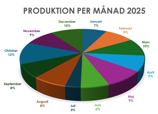 Under 2025 fördelade sig produktionen per månad enligt följande;